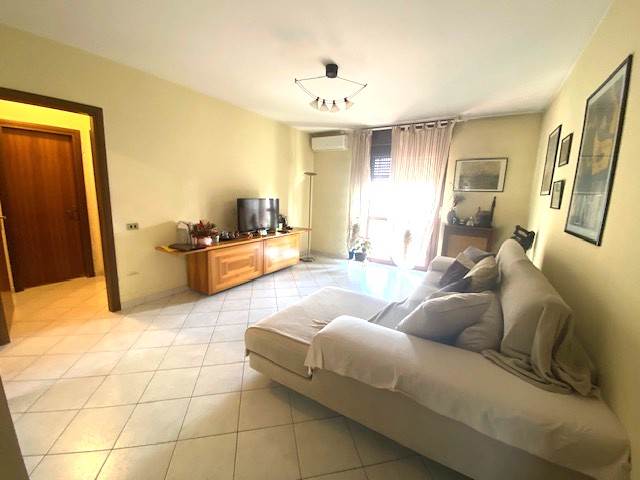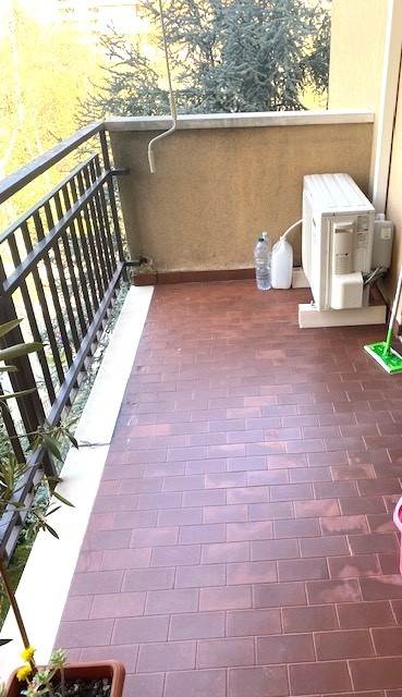 L'ingresso si apre sul soggiorno, luminoso e con accesso a un balcone vivibile con vista aperta sul giardino condominiale. La cucina abitabile dotata di balcone ed un comodo ripostiglio completano la zona giorno. La zona notte è composta da due camere matrimoniali e un bagno che rendono gli spazi particolarmente funzionali. L'immobile si presenta in buono stato ed è dotato di aria condizionata, infissi con vetrocamera cambiati di recente, riscaldamento autonomo e cancelletti di sicurezza.